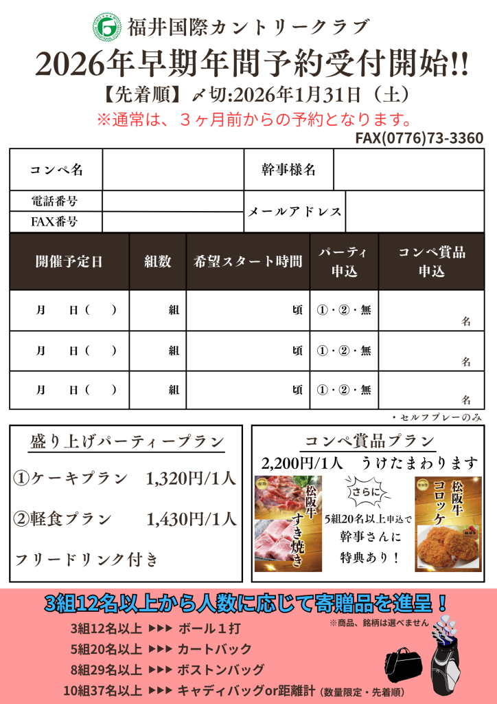 このたび 2026年の年間予約につきまして、早期受付を開始いたします。