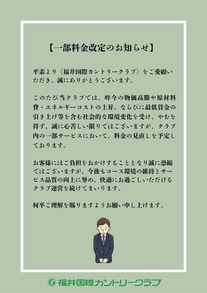 料金改定のお知らせ - 福井国際C.C. [公式] HP予約が一番お得!!福井国際C.C. [公式] HP予約が一番お得!!