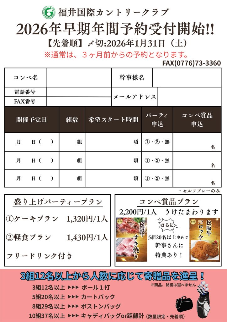 年間予約の早期受付について - 福井国際C.C. [公式] HP予約が一番お得!!福井国際C.C. [公式] HP予約が一番お得!!