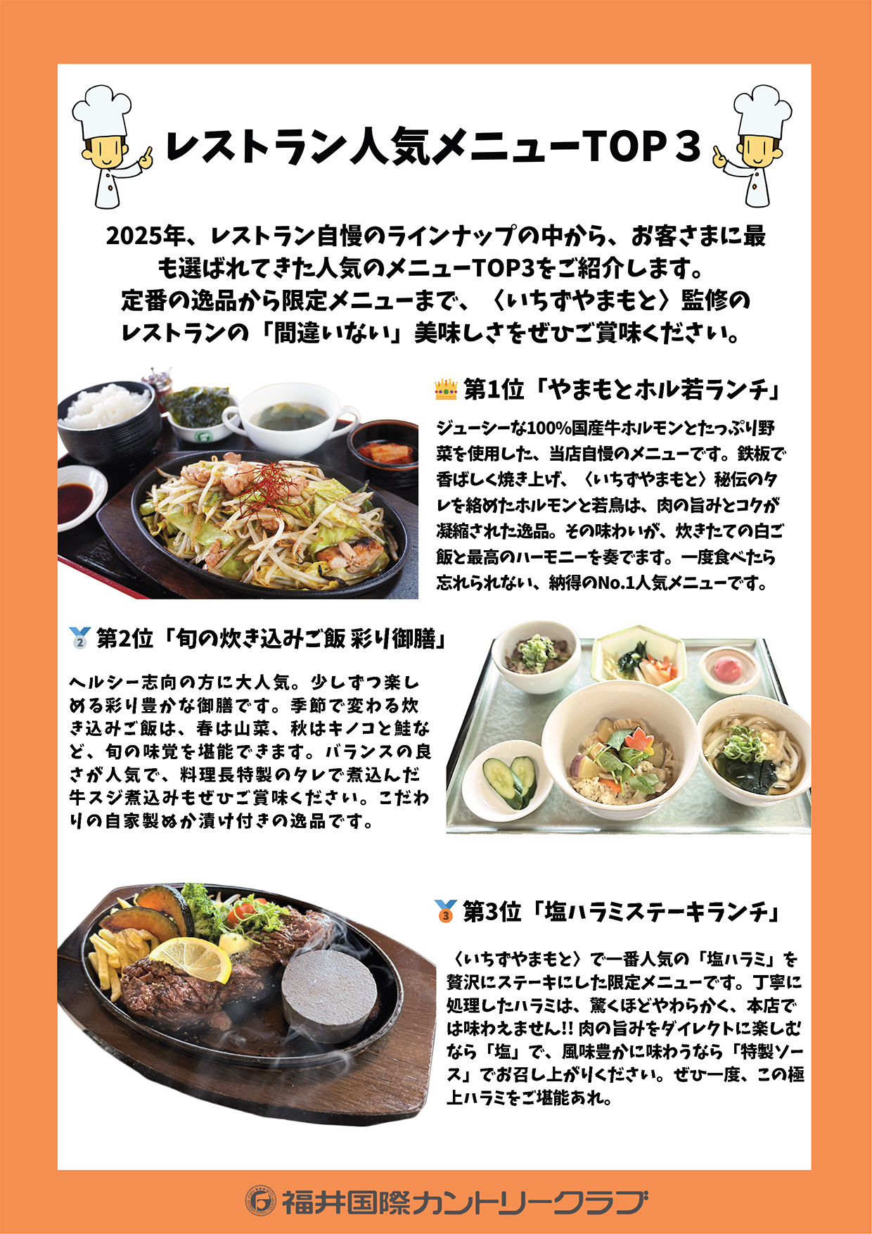 人気レストランメニューTOP3
